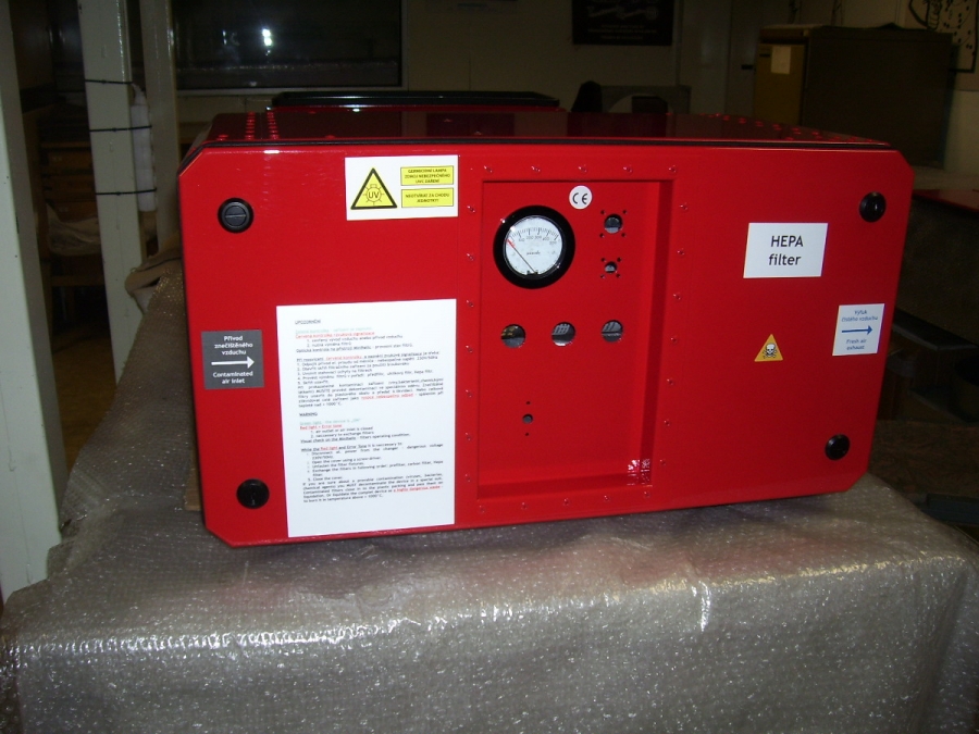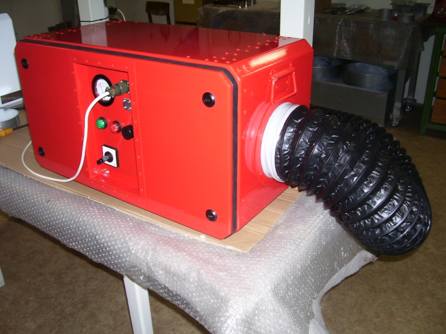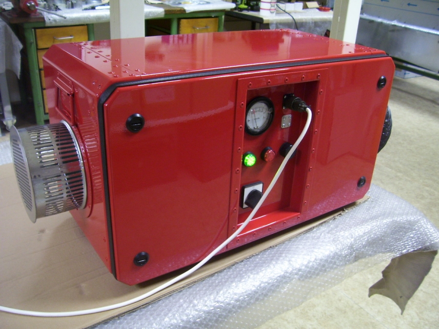 Filtroventilační jednotky se v základu dělají ve třech barvách, ale není problém vyrobit a dodat jednotku v jakékoliv barvě. Zde jednotka v červené barvě.