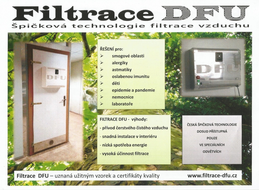 Česká špičková technologie dosud přístupná pouze ve speciálních odvětvích. Filtrace DFU - uznaná užitným vzorem a certifikátem kvality.